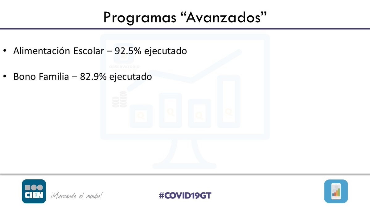 "También "avanzados" van los programas de Alimentación Escolar (que es un programa normal digamos pero que varió su modo de entrega, en los hogares no escuelas) llegando a un 92.5% de ejecución y el programa Bono Familia con un 82.9% ejecutado" comparte @jlavarre en #COVID19GTpic.twitter.com/9e4WouqgtZ