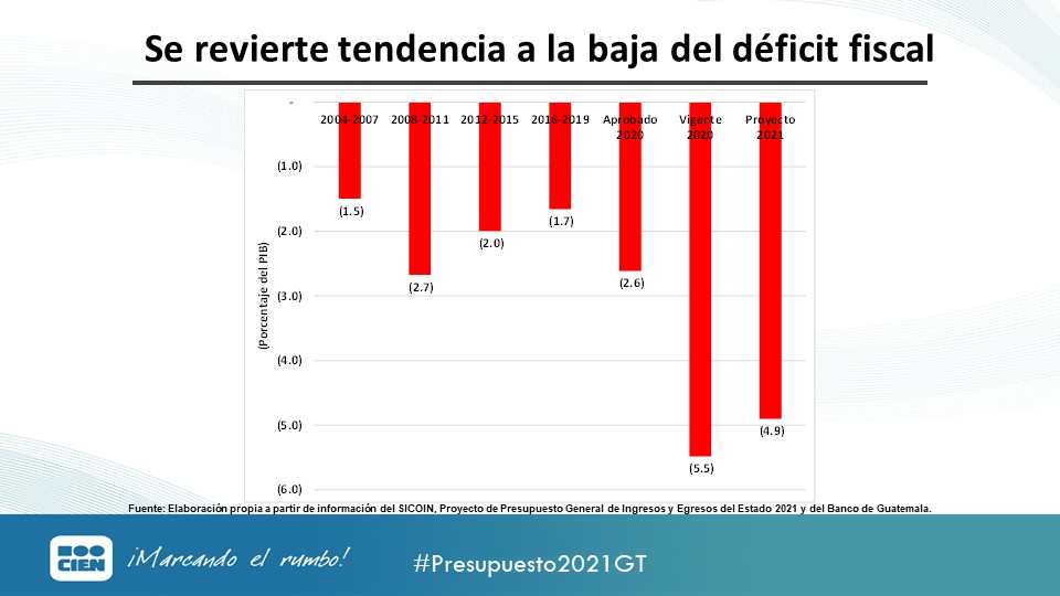 "Veníamos con una tendencia a reducir el déficit fiscal, desde la época de la crisis mundial en 2008 y dimos un brinco en 2020 no sólo por el #COVID19GT sino otras prioridades como pagar los pactos colectivos" muestra @jlavarre en #Presupuesto2021pic.twitter.com/NCC7VSfPyr