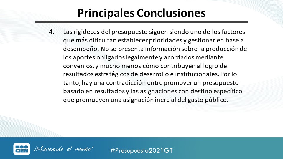 "Hay una contradicción entre promover un #Presupuesto2021 basado en resultados y las asignaciones con destino específico, las cuales causan que el gasto público entre en un ciclo inercial de gasto público" explica @jlavarre en la conclusión 4:pic.twitter.com/MvF5rkLLFV