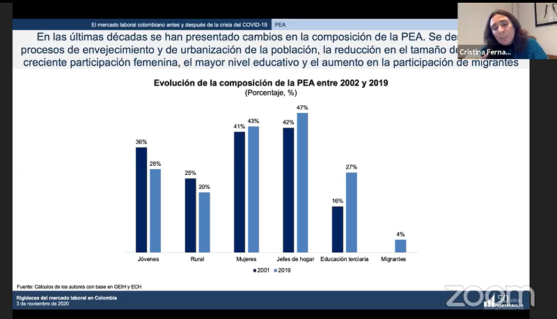 En Colombia, en comparación con el año 2001, la composición de la PEA (2019) ha cambiado en cuanto a trabajadores con educación terciaria, lo cual es positivo para el teletrabajo y enfrentar la pandemia #COVID19 comenta Cristina Fernández de @Fedesarrollo
