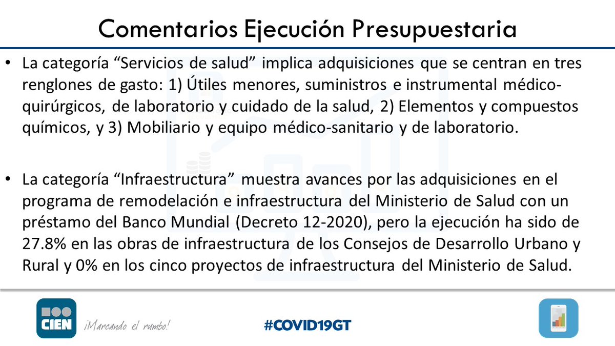 "Infraestructura como categoría tampoco avanza, porque está asociado a procesos más complejos para contrataciones y compras, que las otras categorías, urgen reformas en el Estado a mediano plazo en ciertas leyes como la Ley de Adquisiciones" @jlavarre en #COVID19GT