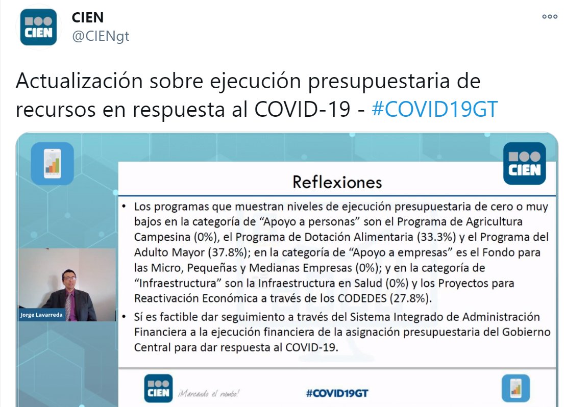 "En varios programas sí se ve al 30 de noviembre, un nivel avanzado de ejecución, aunque sólo es a nivel financiero y se debe revisar qué impacto logró, no sólo cuánto se logró gastar" advierte @jlavarre en #COVID19GT:pic.twitter.com/GJmVZdpPqO