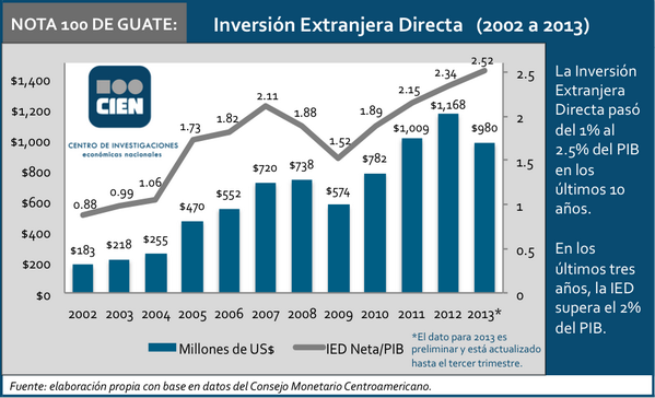 NOTA 100 DE GUATE: La Inversión Extranjera Directa pasó del 1% al 2.5% del PIB en los últimos 10 años.pic.twitter.com/xKv1oH7vwm