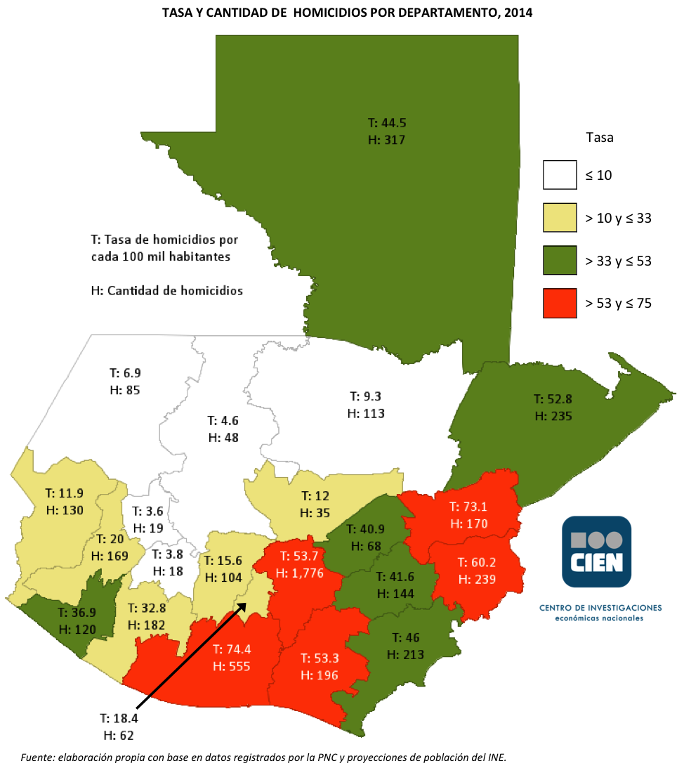 Tasa y cantidad de homicidios por departamento en el año 2014. Escuintla, Zacapa y Chiquimula; las más altas.pic.twitter.com/CK4sG3DjtB