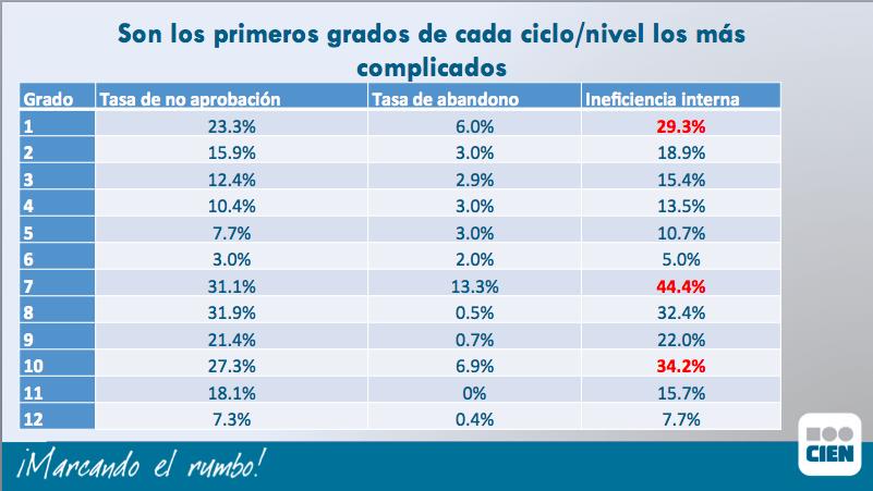 #EducaciónGT Los primeros grados de cada ciclo/nivel son los de mayor ineficiencia interna #DesarrollAppsGt".pic.twitter.com/w7N36A1nh4