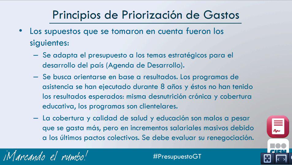 @CIENgt presenta los principios de priorizacion del gasto #PresupuestoGTpic.twitter.com/gmhGNYuOZ4