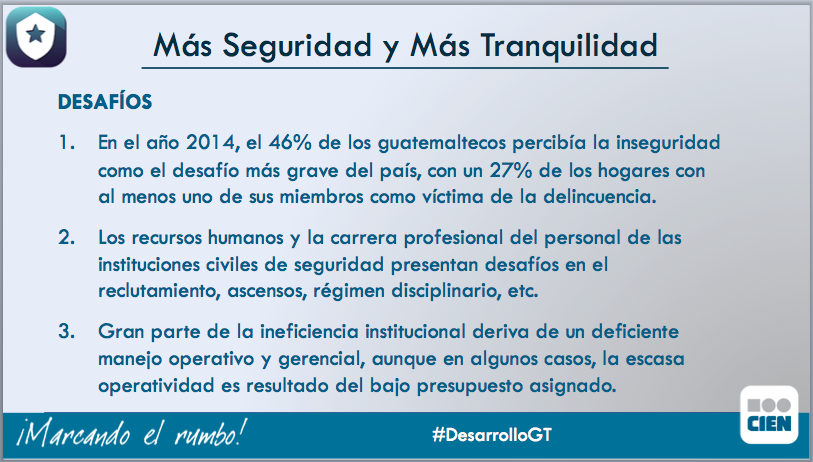 Desafíos que enfrenta el país en materia de Seguridad Ciudadana. #AgendaDeDesarrollo #DesarrolloGTpic.twitter.com/GAnMno3vet