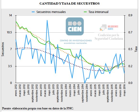 Los secuestros se han reducido. En mayo de 2016 se denunciaron 2 y la tasa fue 0.25 por cada 100 mil habitantespic.twitter.com/cKJLBDgavp