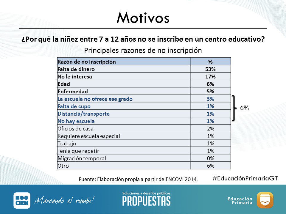 ¿Por qué la niñez entre 7 a 12 años no se inscribe en un centro educativo? 53% por falta de dinero y 17% no le interesa #EducaciónPrimariaGTpic.twitter.com/2OGj2p3413