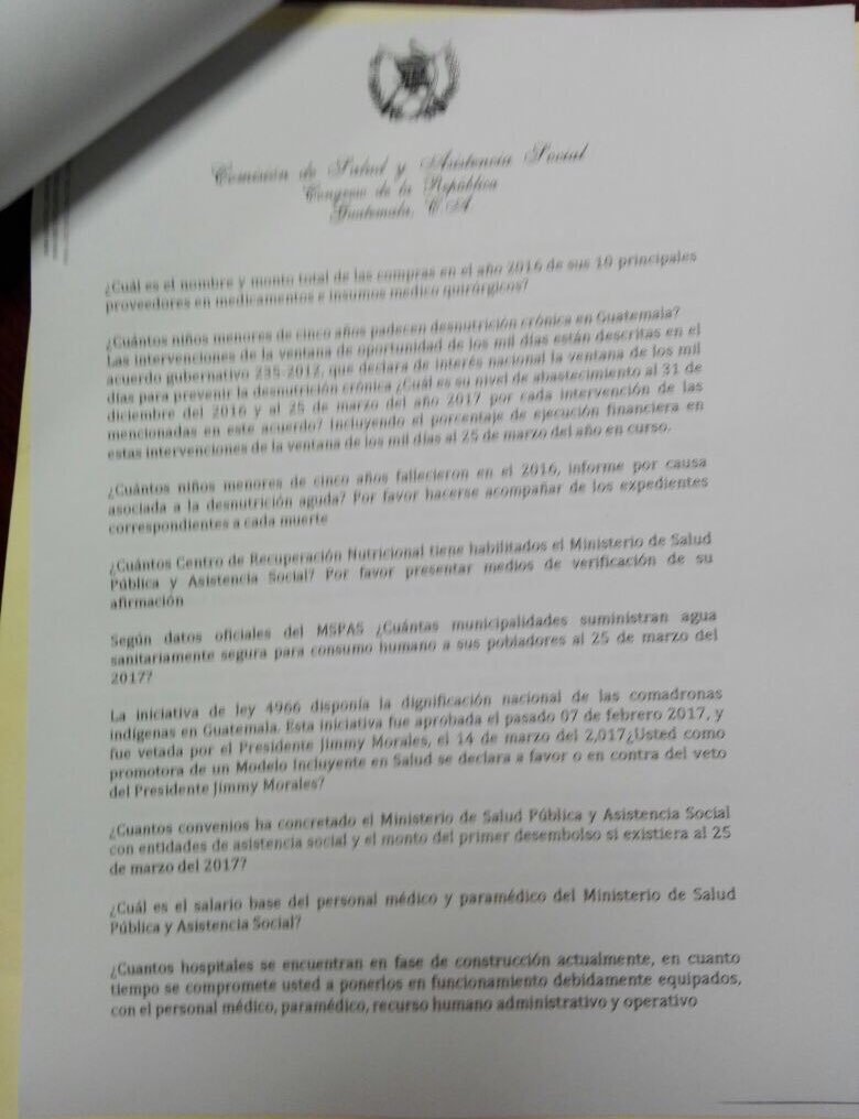 Importante hacer un análisis de las preguntas básicas a la Ministra @hernandezmack @MinSaludGuate Luego las repreguntas. @CongresoGuatehttps://twitter.com/drivera_gtv/status/846753016774623234 …