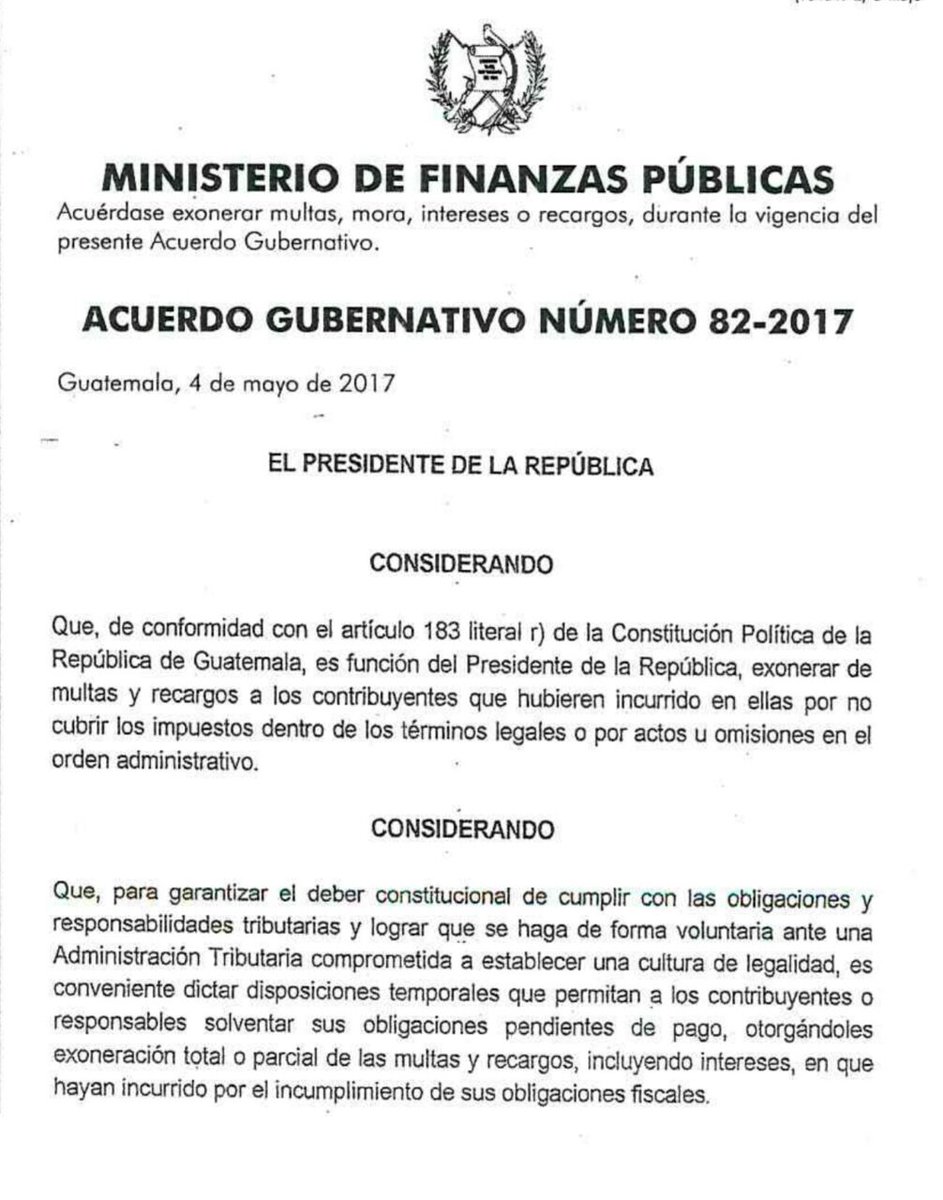 Acuerdo gubernativo presentado por @GuatemalaGob @SATGT @MinFinGTpic.twitter.com/ciK0xX39CH