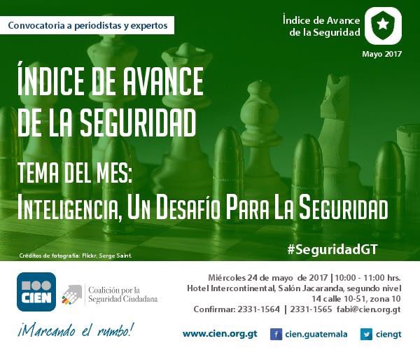Los esperamos a la presentación del Índice de Avance de la Seguridad mensual y el tema: inteligencia. Miércoles 24 de mayo #SeguridadGTpic.twitter.com/vXyf8eWheU