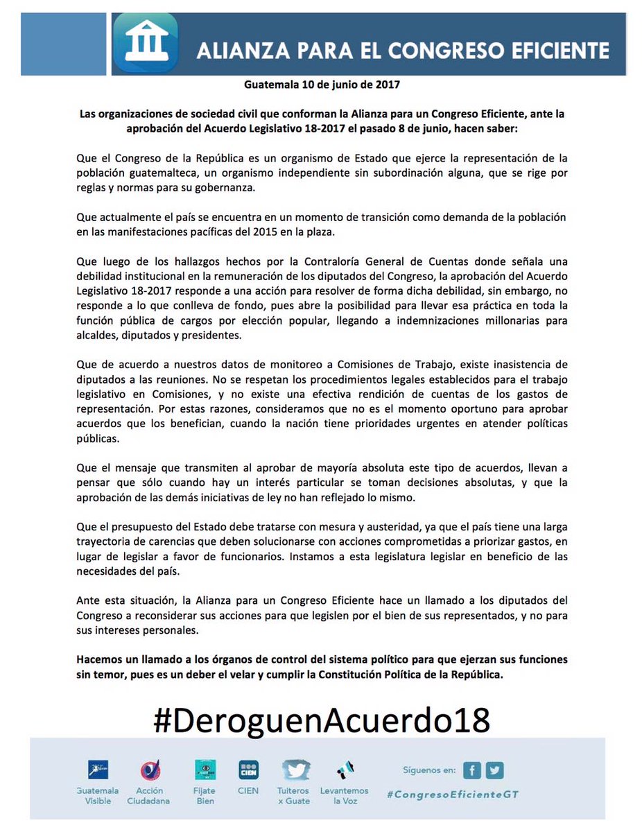 Miembros #CongresoEficienteGT solicitamos a los diputados #DerroguenElAcuerdo18 Guate