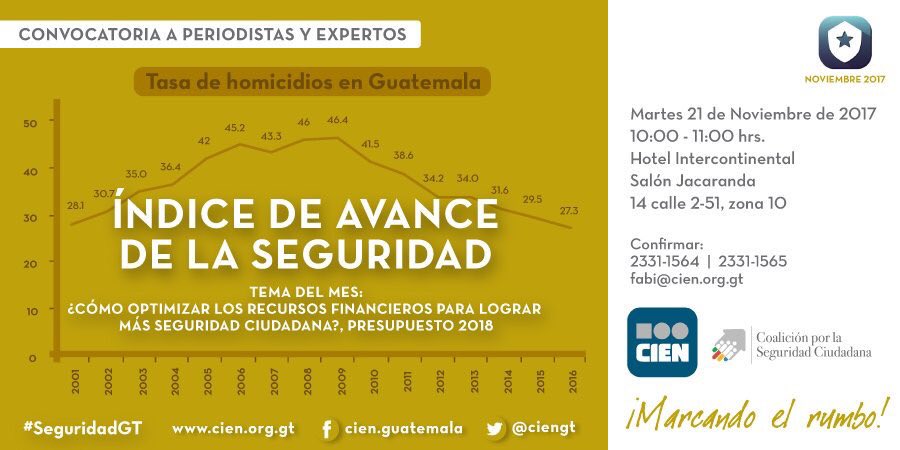 El martes 21 de noviembre, se presentará el IAS y tema del mes: ¿Cómo optimizar los recursos financieros para lograr más seguridad ciudadana? Presupuesto2018, ¡No te lo pierdas!pic.twitter.com/sN8obOKbzd