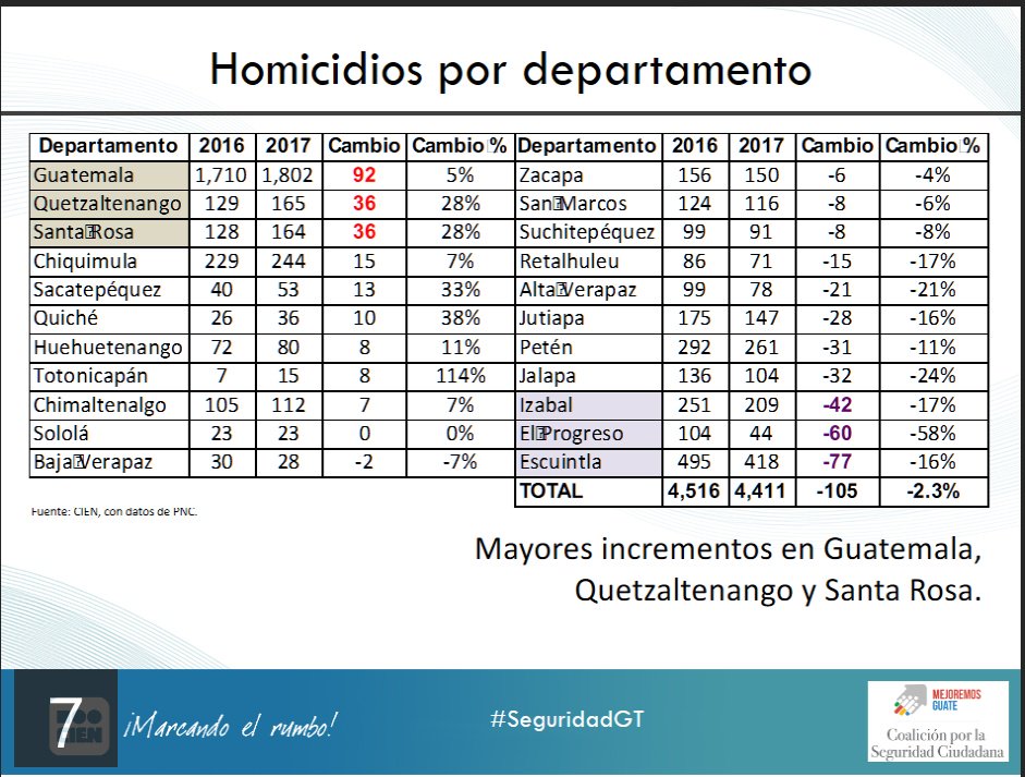 #EUOperativosPNC esta tabla muestra que se han realizado estrategias en Izabal, El Progreso y Escuintla para disminuir los homicidios. @PNCdeGuatemalapic.twitter.com/uj6HbARps0