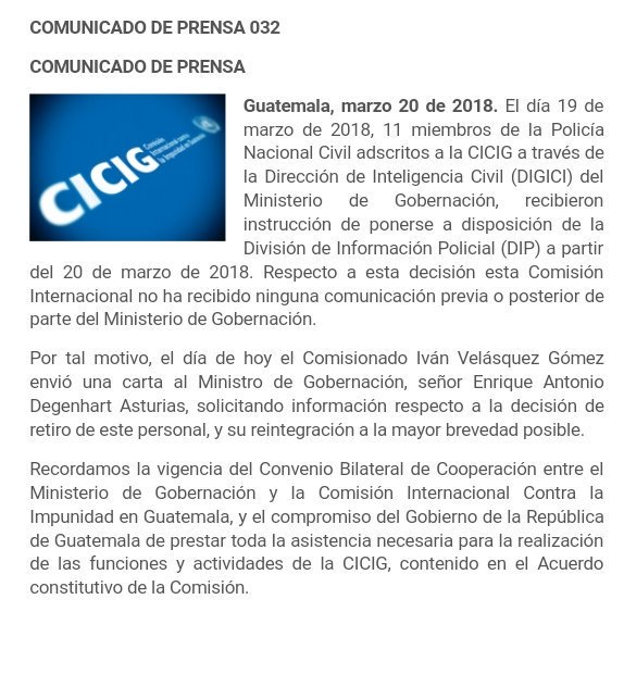 Carta enviada @CICIGgt al @mingobguate al retiro de 11agentes a su servicio #SeguridadGTpic.twitter.com/ITBdUyU4sR