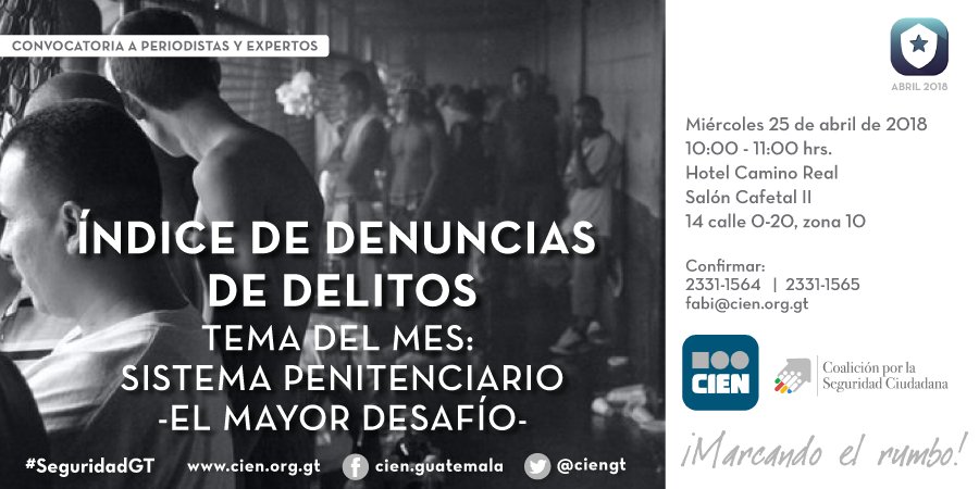 Amigos periodistas y expertos, pasado mañana miércoles 25 de abril están cordialmente invitados a la presentación del IDD y tema del mes #SeguridadGT | Hotel Camino Real | Salón Cafetal 2 | 10 a.m.pic.twitter.com/9aCxEKklGM
