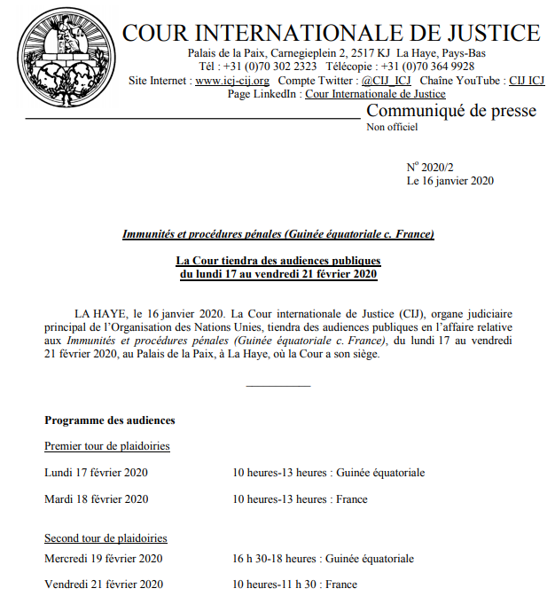 REMINDER: the hearings on the request for the indication of provisional measures submitted by The Gambia in the case of