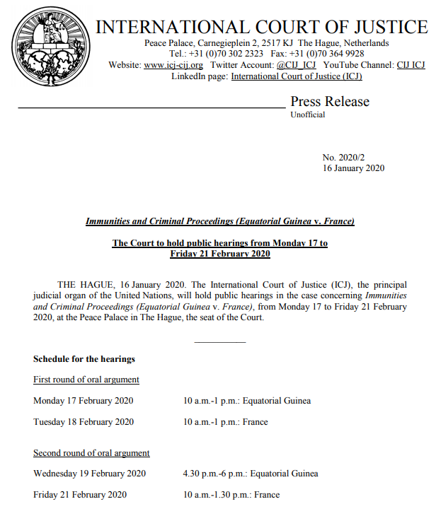 PRESS RELEASE: the hearings on the request for the indication of provisional measures by The Gambia in the case concerning Application of the Convention on the Prevention and Punishment of the Crime of Genocide (