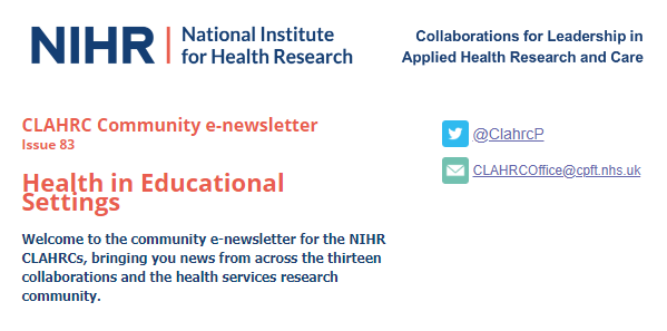 #CLAHRC community newsletter on 'Health in Educational Settings' https://bit.ly/2KEYO4Z@NIHRresearch#whywedoresearch#schools#students#universities#mentalhealth#physicalactivity#teaching#youngpeople#wellbeing#obesitypic.twitter.com/oUXvT1T60D