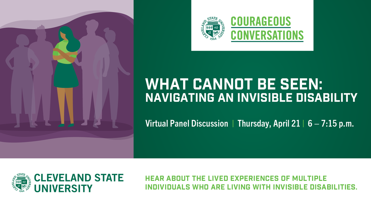 Join us next Thursday at 6 p.m. as we have a Courageous Conversation about the lived experiences of individuals living with invisible disabilities. Register today: https://www.csuohio.edu/courageous-conversations …pic.twitter.com/jeyMF31WLG