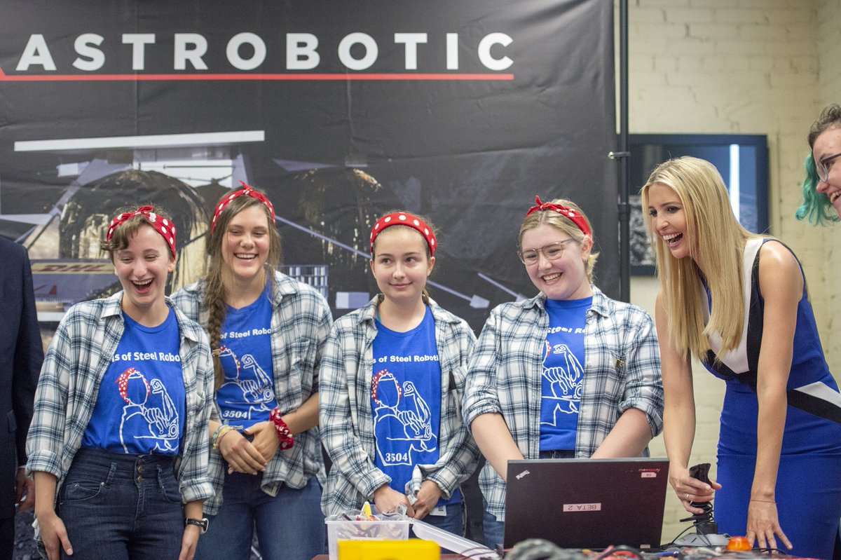 Ivanka Trump receives a tour of Astrobotic from CEO John Thornton and members of the Girls of Steel robotics team on Tuesday, Aug. 14, 2018, in the Strip District. (Steph Chambers/Post-Gazette)pic.twitter.com/h7WGcXnJ6f