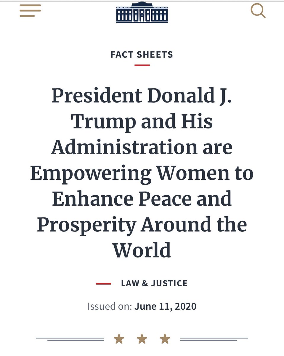 The insinuation that global women’s economic empowerment has not a priority for the administration is ludicrous. This topic has been critical to the Administration since the earliest days. Let’s walk through just some of what the admin has done in the WPS space:https://twitter.com/betsy_klein/status/1278395515600801804 …