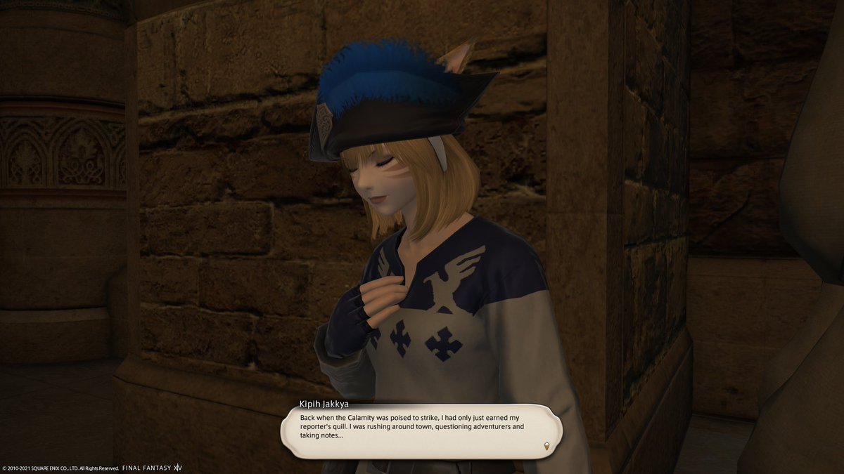During this year's "The Rising" event, The Raven's reporter, Kipih Jakkya, specifically mentions running around before the Calamity to interview people. This ACTUALLY happened. She was controlled by a GM and was presumably responsible for spawning the mobs outside of Ul'dah.pic.twitter.com/AbO85eASpj