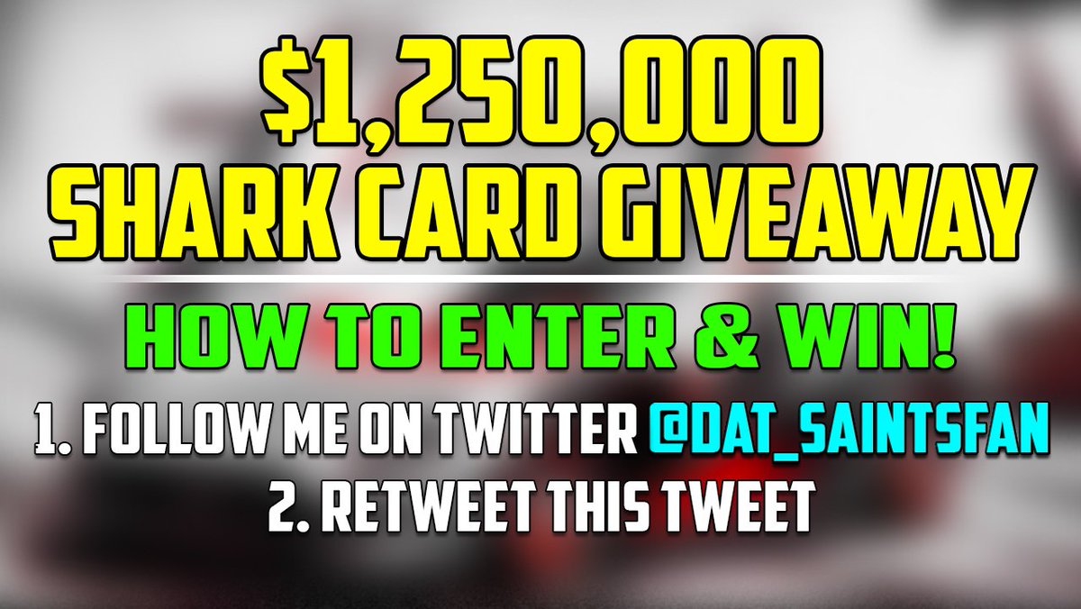 #GTAOnline $1,250,000 Shark Card Giveaway! Just Retweet & Follow me to enter! (Winner picked 7/28)pic.twitter.com/pVUV79E9FW