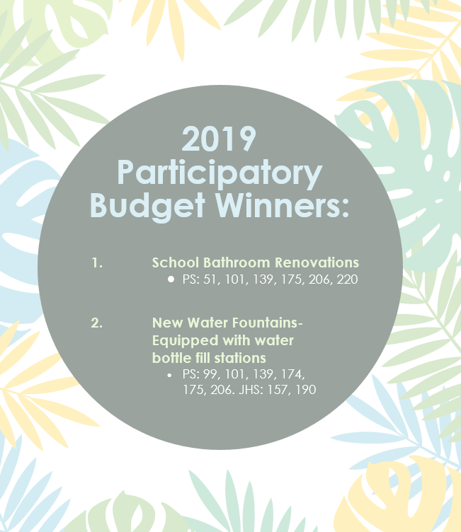 I'm very excited to announce the 2019 Participatory Budget winners! I’d like to also take this opportunity to express my gratitude to the volunteers of the 29th District who spent long hours in shaping and creating the PB ballot. The winners are:pic.twitter.com/IHiwoOFMyh