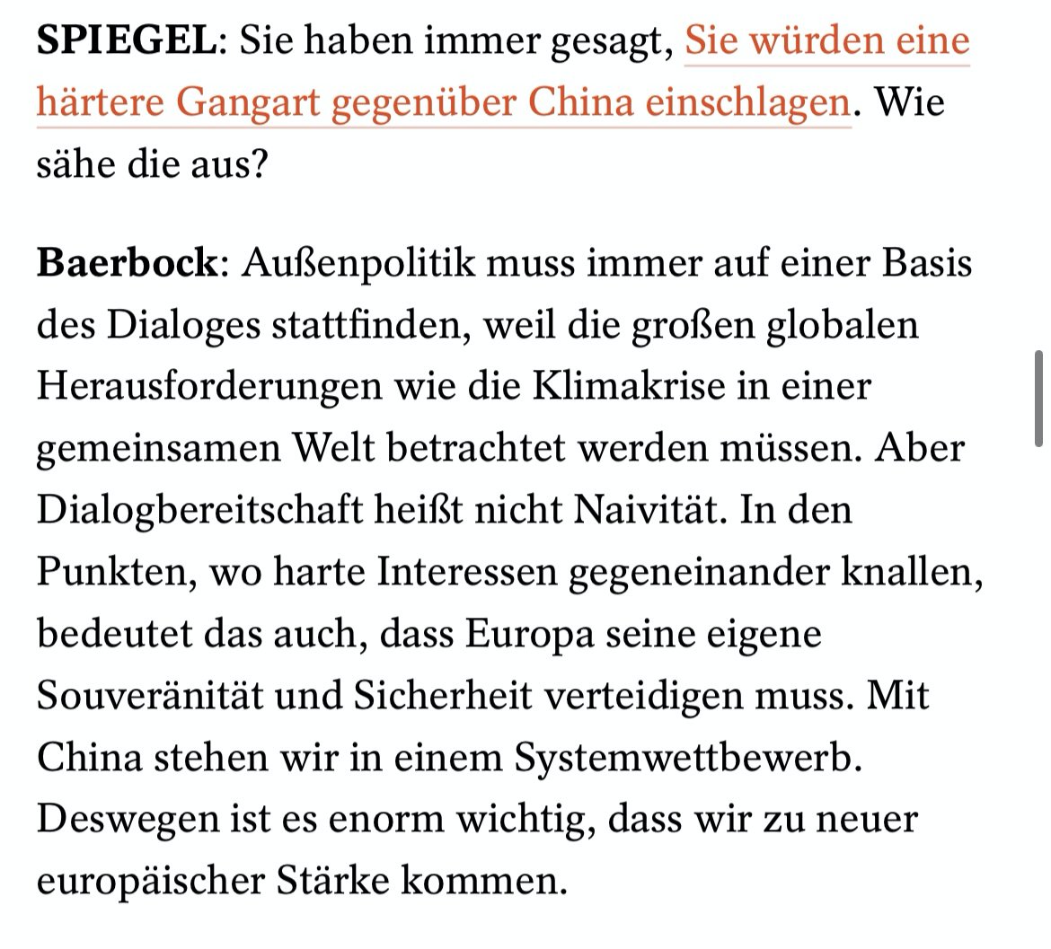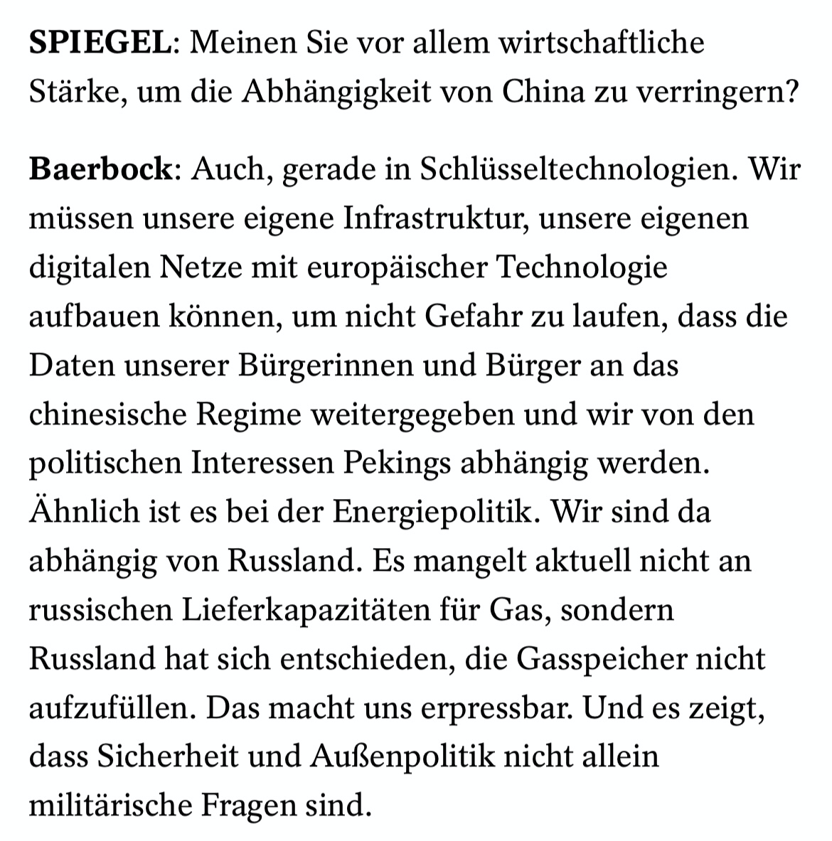 @ABaerbock refreshingly clear on need to reduce economic dependencies on China. Also very clear on excluding Huawei from 5G: "We need to build our own infrastructure with