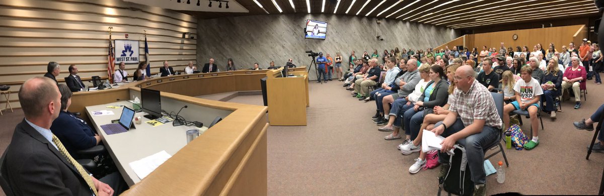 Packed West St. Paul City Council meeting, with table full of feminine hygiene products. Attendees claim “sexism” on city council after a woman was denied a position on the planning commission - and menstrual pads were left outside the home of Mayor Jenny Halverson.pic.twitter.com/LeY2eet1o1