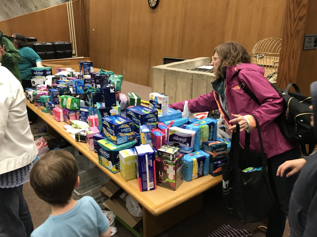 @WestStPaul as the topic of sexism brings many woman arrive bringing feminine hygiene products as donation as well as wearing buttons saying, “This will not be FORGOTTEN, folks.”pic.twitter.com/lM2QjQo3cy