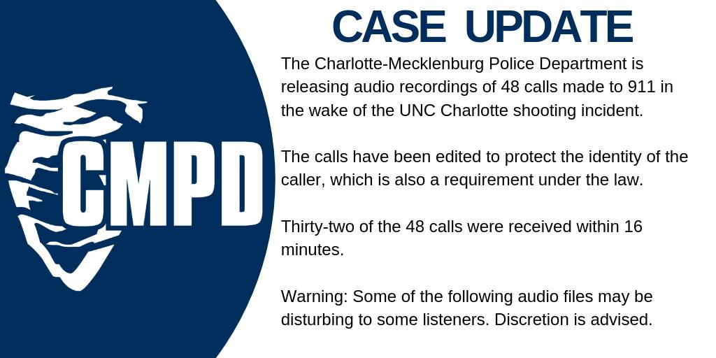 Please follow this link for all the calls made to 911 in the wake of the @unccharlotte shooting incident: https://bit.ly/2UXCnsp pic.twitter.com/YVBfxXdKr6