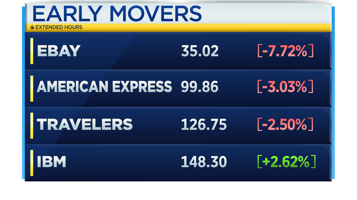 $EBAY and Dow stocks$AXP$IBM &$TRV all making big moves in the pre-market after reporting earningspic.twitter.com/19Yj7ztdGq