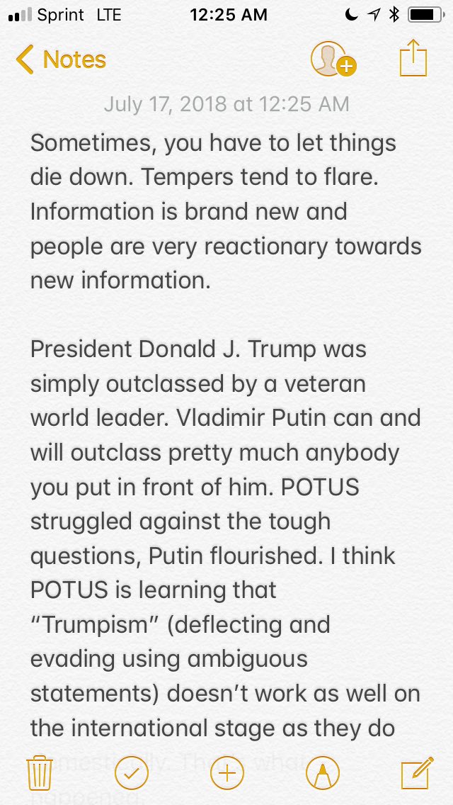 Never, since the Puritans landed, has a President of the United States thrown the country under the bus the way Trump has. I hope all his loyal followers are happy now. Next we'll see Putin's army marching down our streets. What does Putin have on Trump???