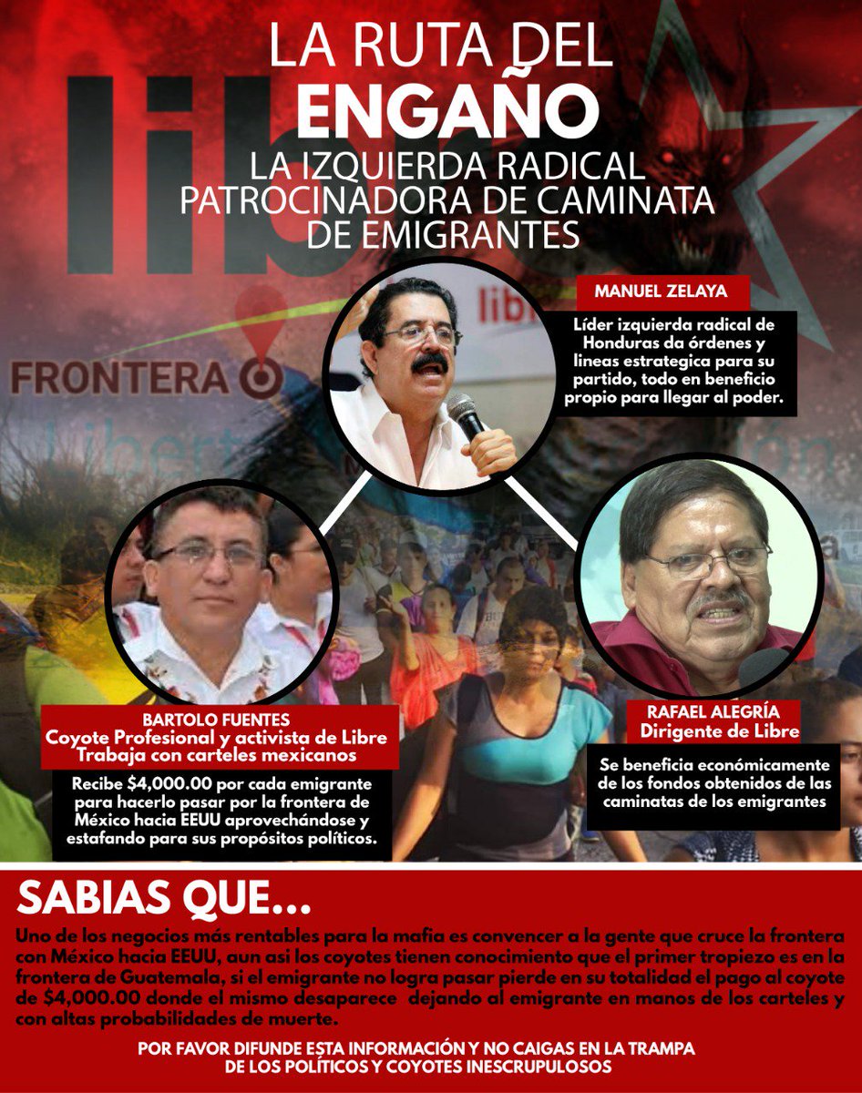 Aqui el rostro de los responsables de esta caravana llena de mentiras y falsas promesas, estas lacras lo unico que buscan es lograr sus intereses personales y destruir a Honduras, a ellos no les importa el bienestar de los hondureños. @HoyMismoTSIpic.twitter.com/XJEh0C5t30