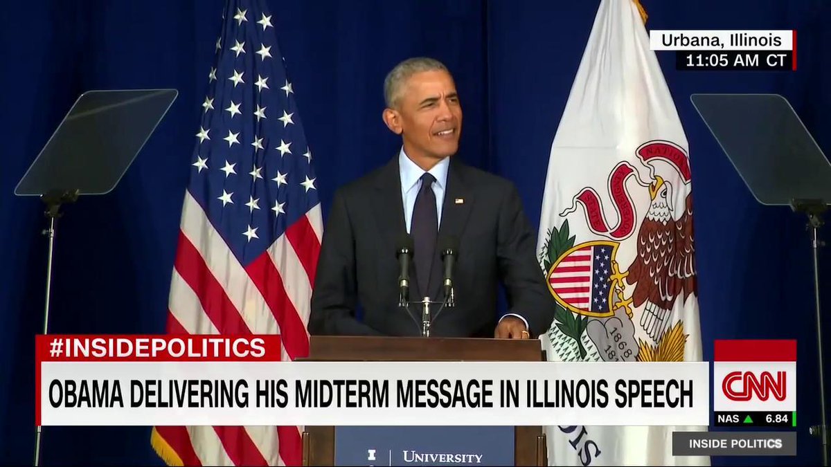 Former President Obama is speaking at the University of Illinois at Urbana-Champaign where he is expected to preview his 2018 midterm election message and give his strongest rebuke yet of President Trump Watch live: http://CNN.it/go Follow updates: https://cnn.it/2wVvCxs pic.twitter.com/Z1HA2poagp