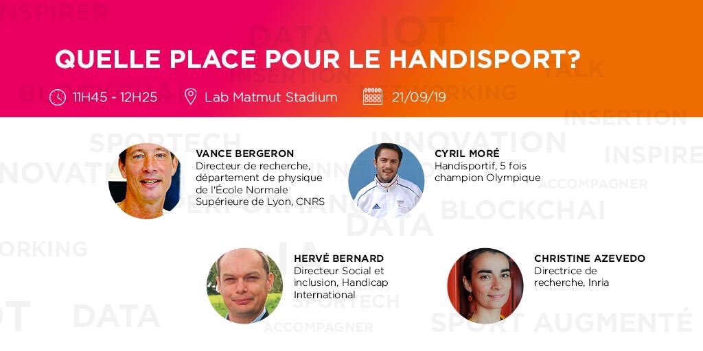 | Fin de la première conférence, on continue avec une question très importante : quelle place pour le #Handisport ? Avec Vance Bergeron du Laboratoire de physique de l’@ENSdeLyon (@CNRS/@UnivLyon1/@ENSdeLyon)