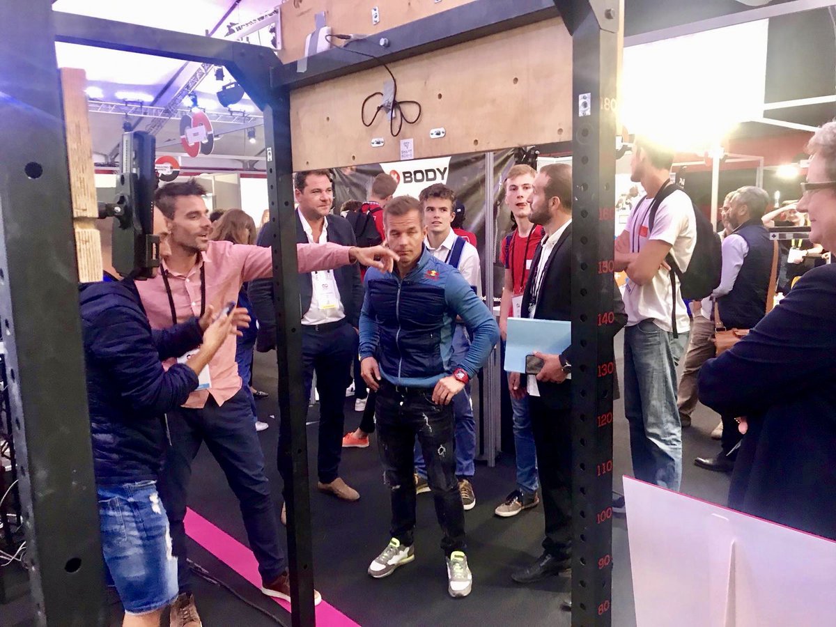 #CNRSsport |@VidalFrederique découvre maintenant la@SmartboardC sur le stand@CNRS à#SportUNLIMITECH : un outil d’entraînement instrumenté et connecté pour l’#escalade