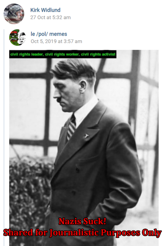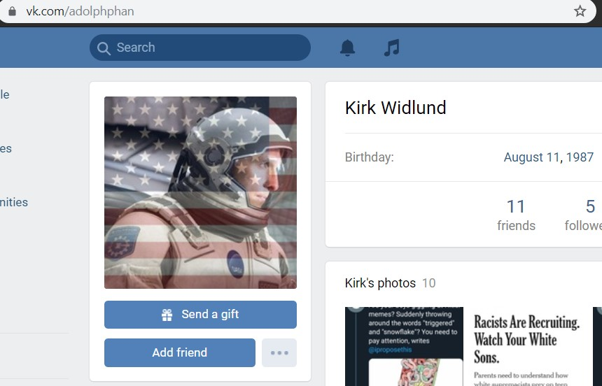 Steffan Tubbs has finally acknowledged our reporting and is claiming, without evidence, that we faked Kirk Widlund's entire VK profile which dates back two years. You can see an archive of Kirk's VK profile here: https://mega.nz/#!8tQzga7I!cV5EulfVjOVM0efC-KI6nLGRccdt19A7EqRa0iNbpbk …https://twitter.com/SWTubbs/status/1204180452656812032 …
