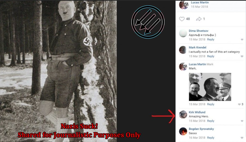 Wanna know how we found Kirk? He was stanning for Hitler in the comments of his Nazi buddy Lucas James Martin's profile. Kirk describes Hitler as an "Amazing Hero."pic.twitter.com/8nqWqeN5GD
