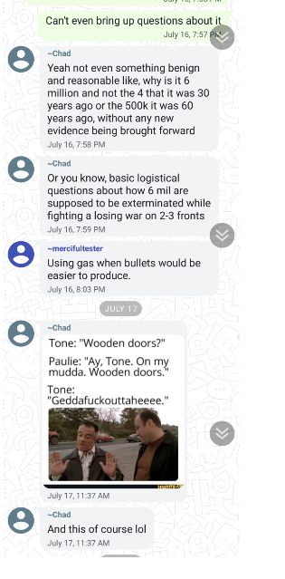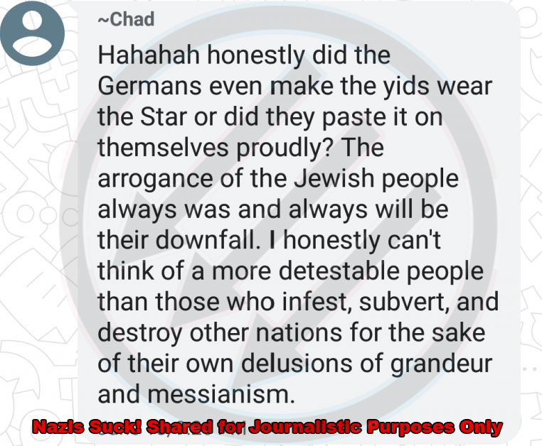 After a quick back and forth, Chad got our source into a Threema group chat he coordinates. This is where the chat got a lot less crypto. Here's Chad saying he can't think of a more detestable group than Jewish people.pic.twitter.com/6Apa8SxD0J