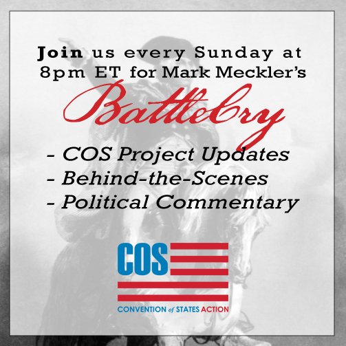 Get commentary on what is happening with COS, plus politics of the day with Convention of States President Mark Meckler. Don’t miss it tonight at 8:00pm ET on the Convention of States Facebook page!pic.twitter.com/RttSjuQ9sc