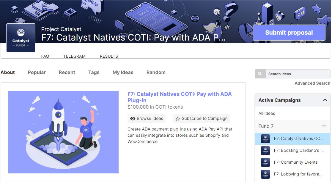 The COTI<>Project Catalyst (Fund7) idea submission is now open! Head over to: https://cardano.ideascale.com/a/campaign-home/26256 … and submit your idea for a chance to get $100,000 in COTI coins!