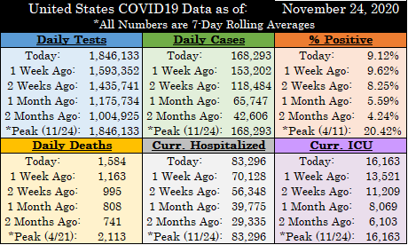 Thread showing summary of the US and the top 5 most populous states: 1. US 2. California 3. Texas 4. Florida 5. New York 6. Pennsylvania 7. Illinoishttps://twitter.com/niravb/status/1331391354916704256?s=20 …