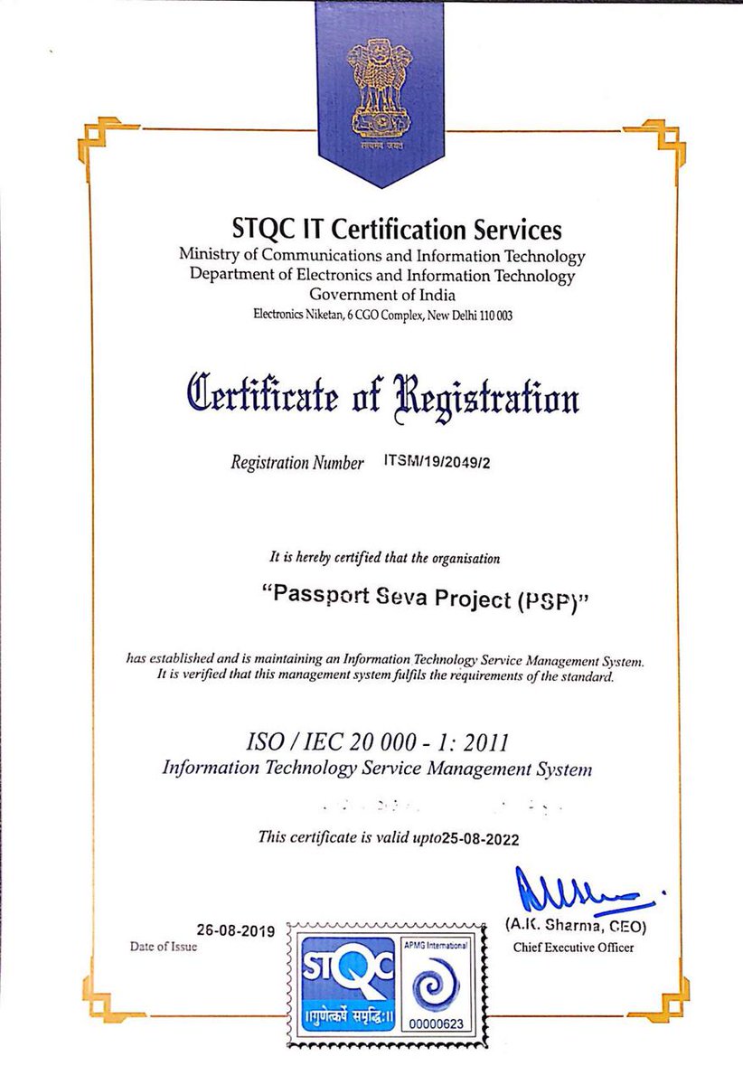 The Passport Seva Programme has been awarded with triple ISO certificates by STQC, MeitY viz ISO 9001:215, ISO/IEC 20000-1:2011, ISO/IEC 27001:2013. This would further help us to improve in delivering passport services in a timely, transparent, more accessible and reliable mannerpic.twitter.com/OlgYv3CXHo