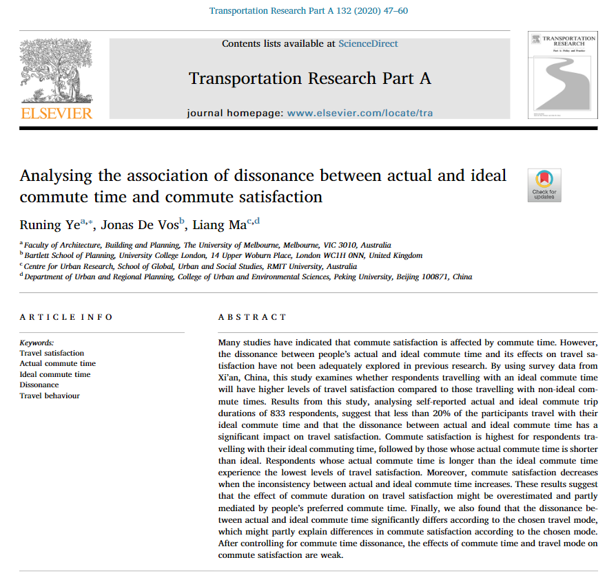 Can a mismatch between actual and ideal commute time influence commute satisfaction? Find out in our new paper in Transportation Research Part A.
