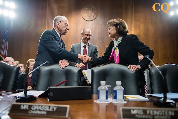 #PhotosoftheWeek: Chairman @ChuckGrassley and ranking member @SenFeinstein arrive for a Senate Judiciary Committee markup on Oct. 11.