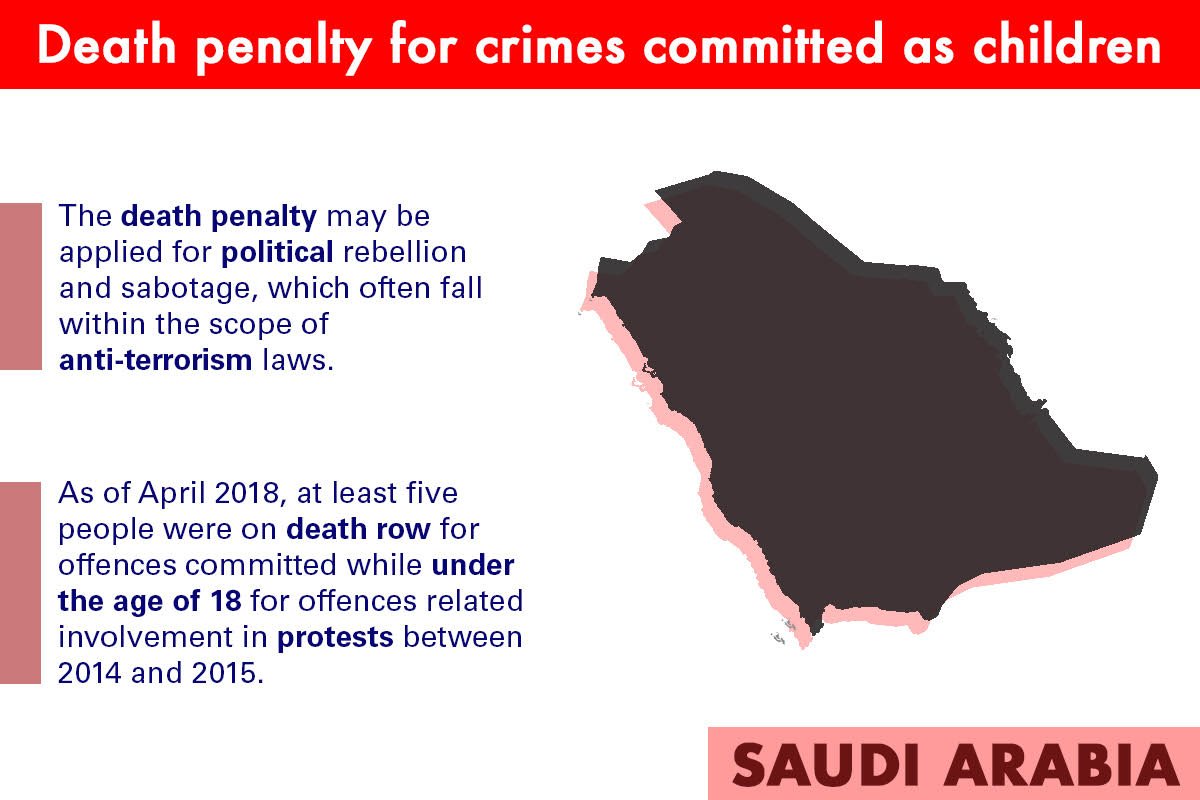 In Saudi Arabia, the death penalty may be applied for political rebellion and sabotage, which often fall within the scope of anti-terrorism laws. More in our new report: https://www.crin.org/en/node/43591/ #ChildRights #InhumanSentencingpic.twitter.com/E5DUFUtqxJ